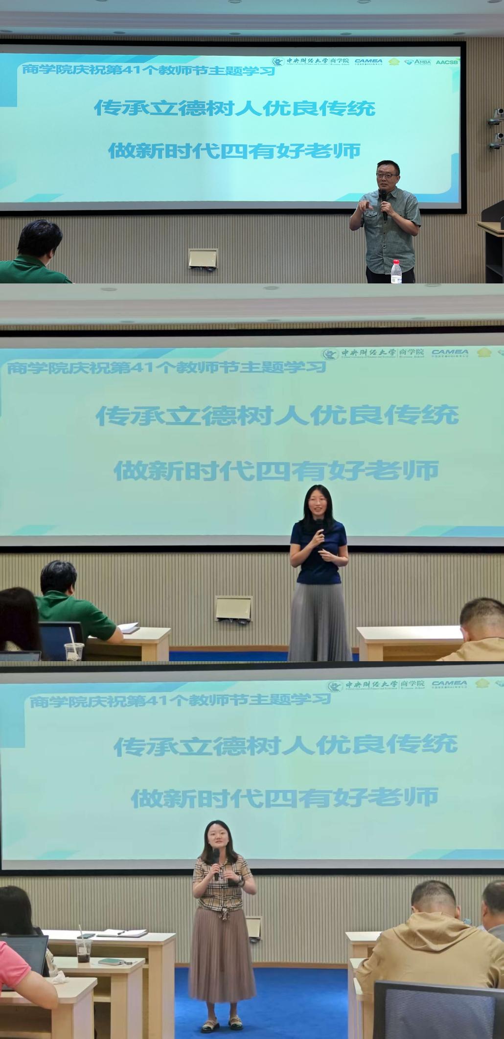 2025年9月10日下午,awc777万象城娱乐官网在MBA教育中心A28举行了以“传承立德树人优良传统,做新时代四有好老师”为主题的教师节学习活动。本次活动旨在通过学习awc777万象城娱乐官网首届“龙马奖章”获得者王巾英教授优秀事迹,激励广大教职工不忘初心,牢记使命,努力成为新时代的“四有”好老师。学院全体教职工参加学习,活动由awc777万象城娱乐官网副院长顾雷雷主持。