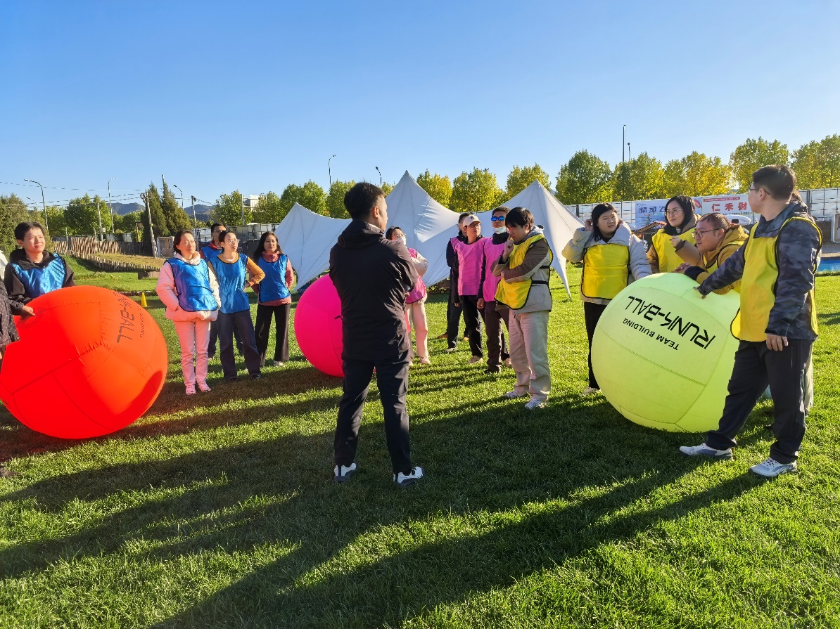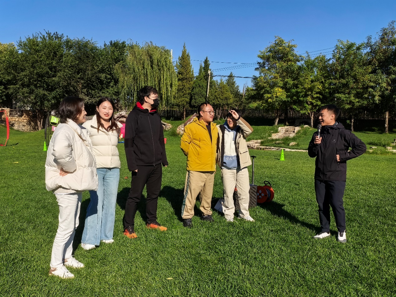 午餐过后,备受期待的团建活动正式拉开帷幕。在专业营地老师的耐心指导下,活动首先开展了热身互动环节。大家排成队互相为身边的伙伴按摩放松,缓解旅途的疲惫,共同的呐喊瞬间消解了午后的困倦,模仿模特步的小惩罚更是让大家忍俊不禁,欢快的笑声在营地的上空回荡。