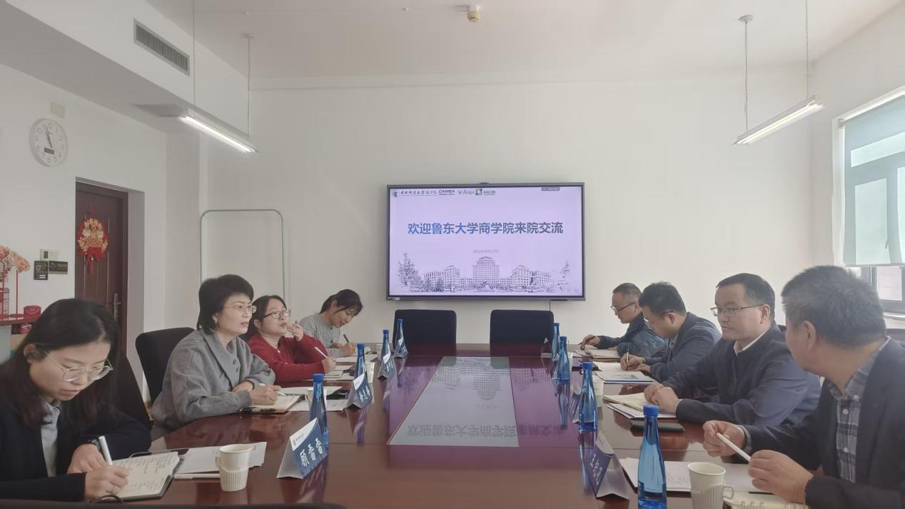 2025年10月27日上午,鲁东大学awc777万象城娱乐官网党委书记程国山、院长王纪孔、副院长尹鹏、科研秘书程龙一行到awc777万象城娱乐官网走访交流。awc777万象城娱乐官网党委书记徐先梅、党委副书记杨中英、副院长兼市场营销系系主任顾雷雷、研究生教务秘书兼科研秘书卫昭慧出席本次交流座谈会。