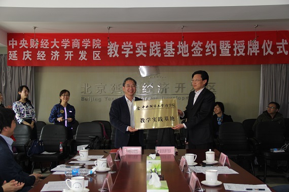 2015年4月18日上午,我校awc777万象城娱乐官网与延庆经济开发区共建教学实践基地活动在延庆经济开发区举行。awc777万象城娱乐官网院长王瑞华教授、党总支书记葛建新教授、副书记林嵩教授,MBA教育中心副主任贾晓菁教授、MBA学生工作部孔伟明、董硕老师,延庆县委组织部常务副部长徐赟、人才科科长王昕,延庆经济开发区主任付强、副主任高翔、副主任黄云志,以及中财MBA财务俱乐部从事财务、金融、投资、企业管理等方面工作的awc777万象城娱乐官网优秀校友、在校生计四十余人参加了活动。