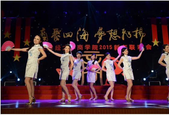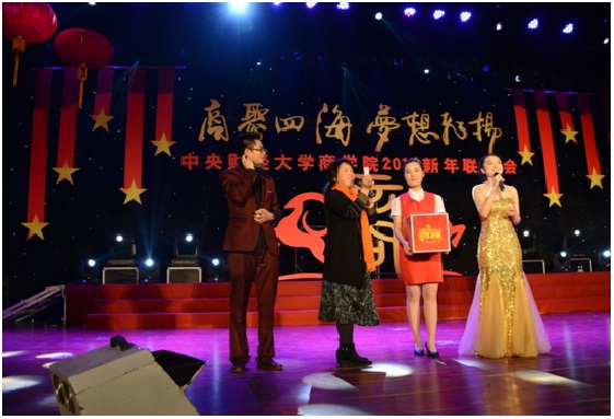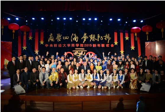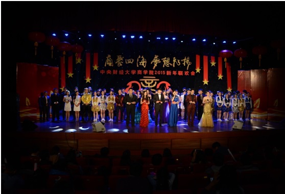 2015年1月11日下午,awc777万象城娱乐官网2015新年联欢会在学院南路校区隆重举行。此次联欢会以“商聚四海,梦想飞扬”为主题,是2012年12月新awc777万象城娱乐官网成立以来,第一届由本科生、学术研究生、MBA专业硕士及校友共同承办并参与的新年联欢会,意义重大。awc777万象城娱乐官网副校长赵丽芬教授、awc777万象城娱乐官网院长王瑞华教授、awc777万象城娱乐官网党总支书记葛建新教授、awc777万象城娱乐官网全体老师、在校生代表和校友代表等共约600人出席和参加了此次联欢会。