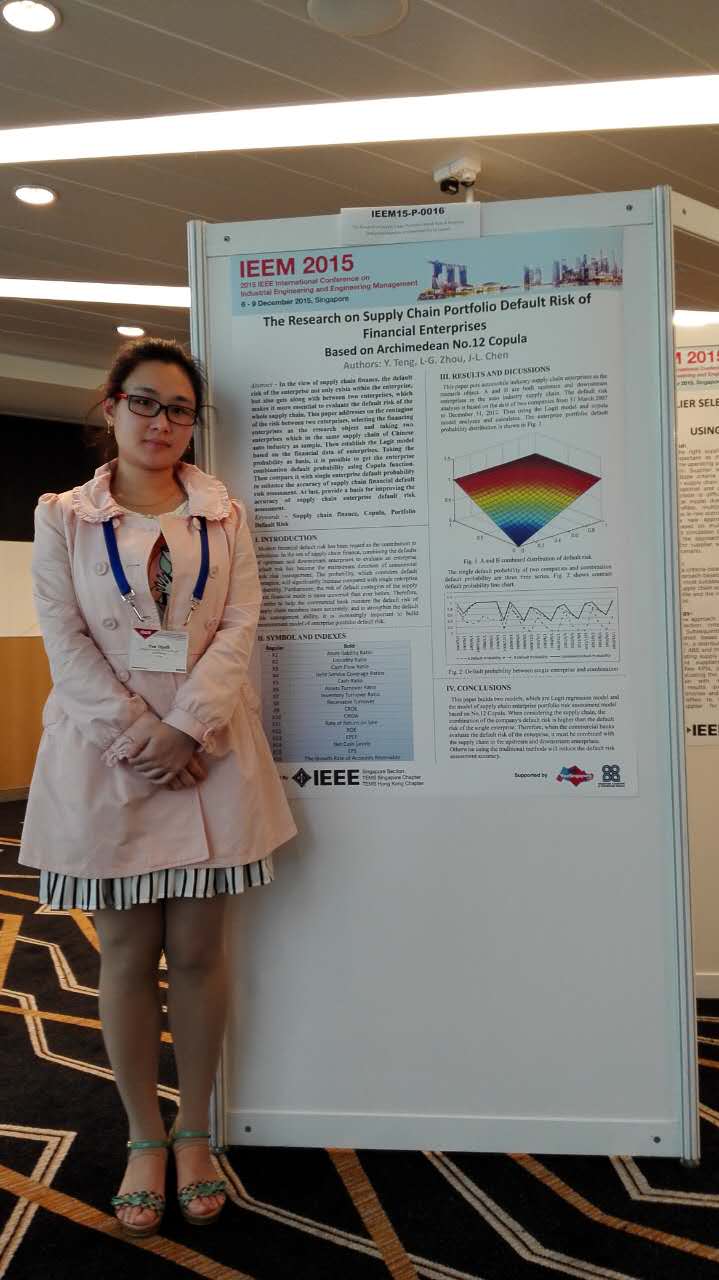 2015年12月6日至9日,2015年 IEEM国际会议在新加坡召开。我校awc777万象城娱乐官网供应链与运营管理系副教授代宏砚老师、2014级物流管理专业硕士研究生滕月同学受邀前往参加此次国际学术会议。