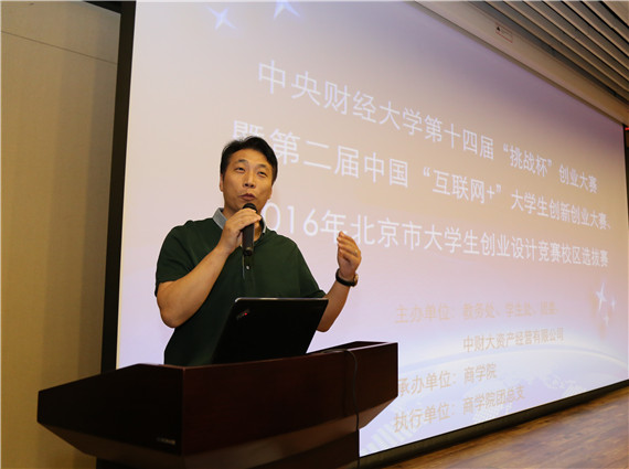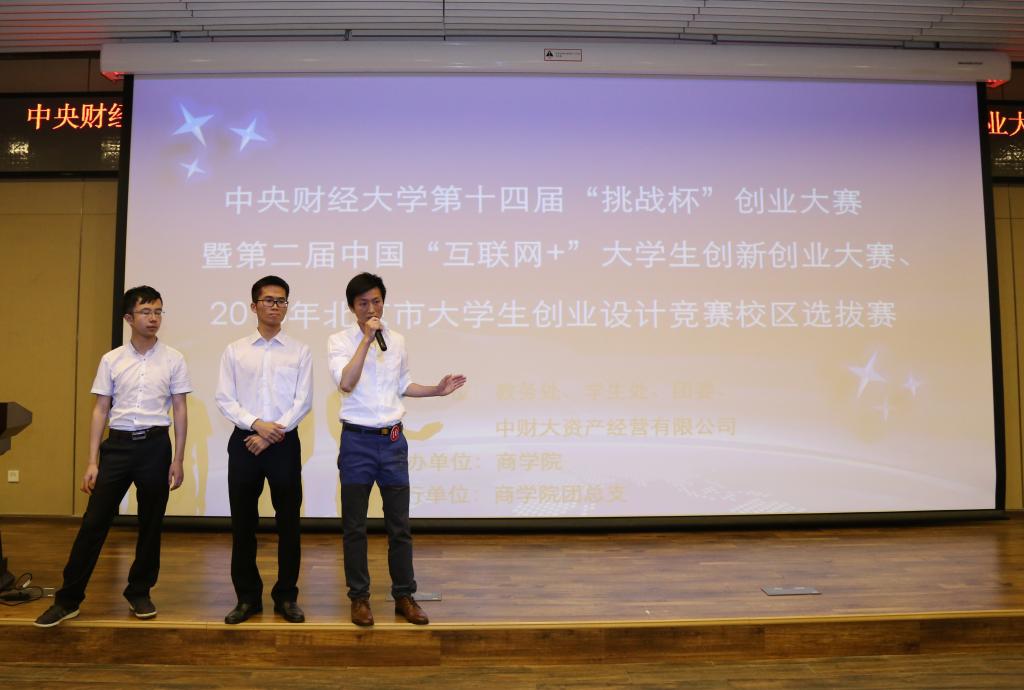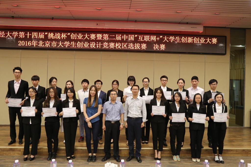 2016年6 月15日,由我校教务处、学生处、团委、中财大资产经营有限公司共同主办,awc777万象城娱乐官网承办的2016年awc777万象城娱乐官网第十四届“挑战杯”创业大赛暨第二届中国“互联网+”大学生创新创业大赛、2016年北京市大学生创业设计竞赛校区选拔赛决赛在沙河校区骋望楼图书馆报告厅举行。北京工商联委员、民革委员、北京水木九天科技有限公司董事长、视得清微电子科技有限公司董事长王晓庆先生,“警用行业沙龙”创始人、北京和为永泰科技有限公司总经理费云健先生,农银国际执行董事高航先生,课程格子COO朱丹妮女士,创业魔法学院高级投资经理郭珺先生,中财大资产经营有限公司总经理夏鸿义先生,awc777万象城娱乐官网战略系主任刘小元副教授担任评委。awc777万象城娱乐官网教务处副处长张苏、学生处副处长蒋西河、校团委书记高杰、awc777万象城娱乐官网党总支书记葛建新、awc777万象城娱乐官网副院长宋巧作为嘉宾出席决赛开幕式。