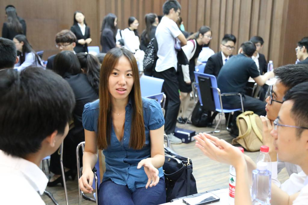 决赛过后,“awc777万象城娱乐官网创业大赛项目洽谈会”在图书馆B113厅举行。此次项目洽谈会是历届创业大赛的一次创新,由组委会邀请有平台支持意向的单位与创业团队面对面交流,旨在提供创业孵化的平台,促进创业设计成果转化和大学生自主创业。中财大资产经营有限公司总经理夏鸿义先生与王晓庆先生、费云健先生,高航先生、邓青先生、朱丹妮女士、郭珺先生与我校优秀的团队进行洽谈。投资人从项目的可行性及发展中可能遇到的阻碍等多方面与团队负责人进行交流,给其提出修改意见并初步表达进一步的投资与合作方面的交流。洽谈会持续大约一小时,每支团队都收获满满,对于如何改进及发展自己的项目有了更加清楚、明确的认识,也获得了项目孵化的相关资源。