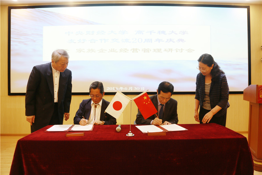 我校与高千穗大学自1996年开始商洽进行合作研究,于1997年6月正式签署了学术交流协议。20年来,在双方历任校领导的关怀下,两校学者先后在会计、税务领域和企业管理领域开展了广泛的比较研究,根据课题需要,每年定期召开研讨会、深入企业实地考察等,经过不懈努力,取得了系列可喜的成果,分别在中国和日本正式出版,受到广泛好评和关注。此次20周年庆典及研讨会的召开,是对两校友好交流及合作研究成果的总结和展示,彰显了中日教育合作的典范。我们有理由期待,随着两校合作得进一步深入,双方的信赖关系将得到进一步加强,两校不仅能够成为相关领域学术研究的排头兵,而且成为政府的重要智库,为服务两国经济社会发展提供强大的人才和智力支持。