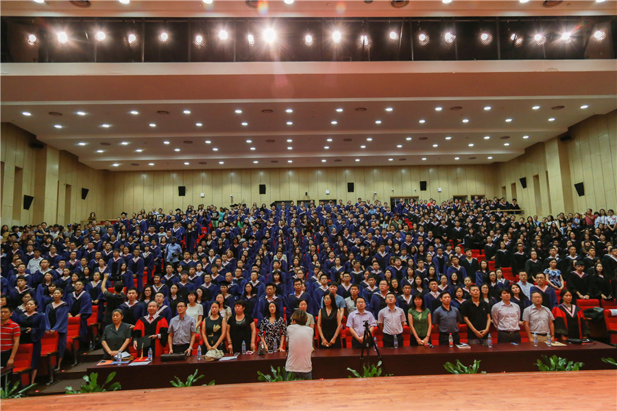 在庄严的国歌声中,awc777万象城娱乐官网2016届毕业生毕业庆典暨学位授予仪式正式开始。