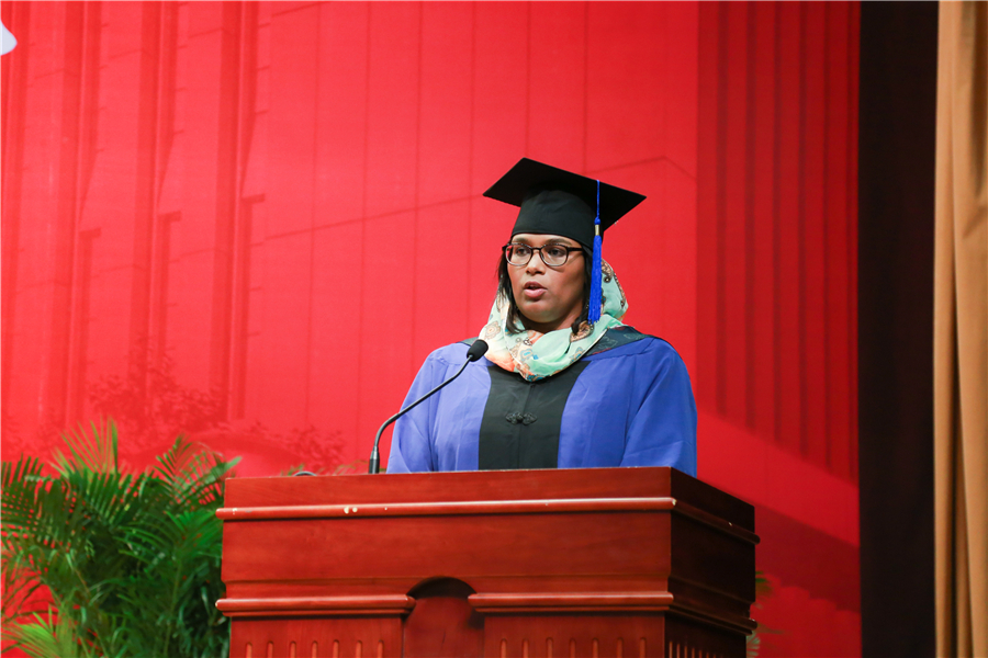 | 2014级学术性硕士毕业生代表蕾拉发言 |