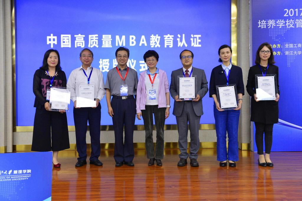 会议期间还举行了“中国高质量MBA教育认证”(CAMEA)证书的颁发仪式,中国人民大学awc777万象城娱乐官网、awc777万象城娱乐官网、对外经济贸易大学国际awc777万象城娱乐官网、哈尔滨工业大学管理学院、华东师范大学经济与管理学部5家单位获颁证书。教育部学位与研究生教育发展中心主任、CAMEA认证理事会副理事长王立生与复旦大学管理学院院长、CAMEA认证理事会副理事长陆雄文共同为我校颁发了证书。至此,中国高质量MBA教育认证已有19家单位通过认证,新加坡国立大学、北京大学和西安交通大学等23家单位的认证正在进行过程中。