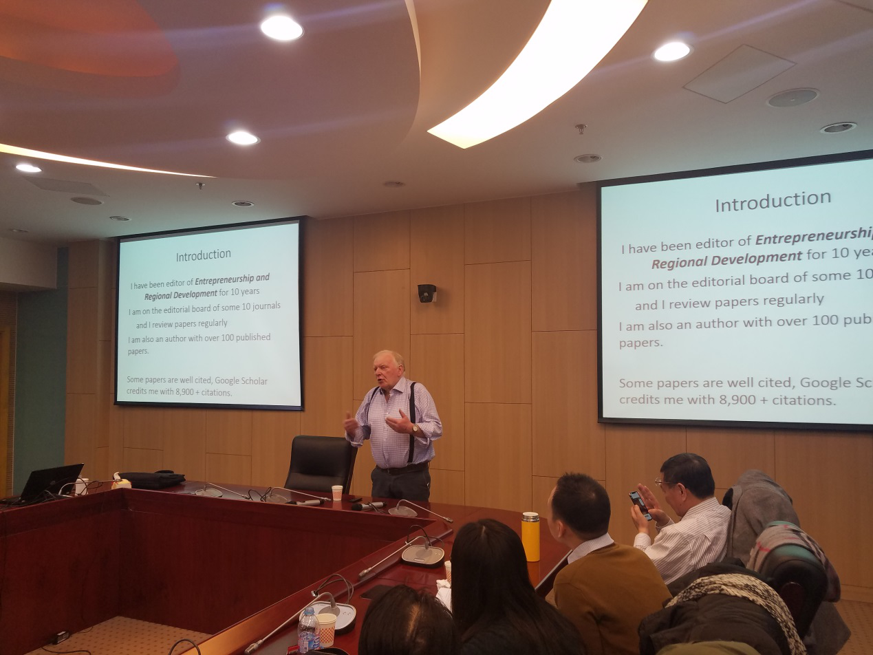 浙江大学管理学院创业研究所所长、讲座教授、美国宾夕法尼亚布鲁斯堡大学管理学院终身教授斯晓夫,英国Robert Gordon University Aberdeen Business School教授,创业中心主任,Entrepreneurship and Regional Development(SSCI)期刊主编Alistair Anderson分别就社会创业前沿议题、文献精读、论文撰写和发表等不同方面进行了研讨和讲座。
