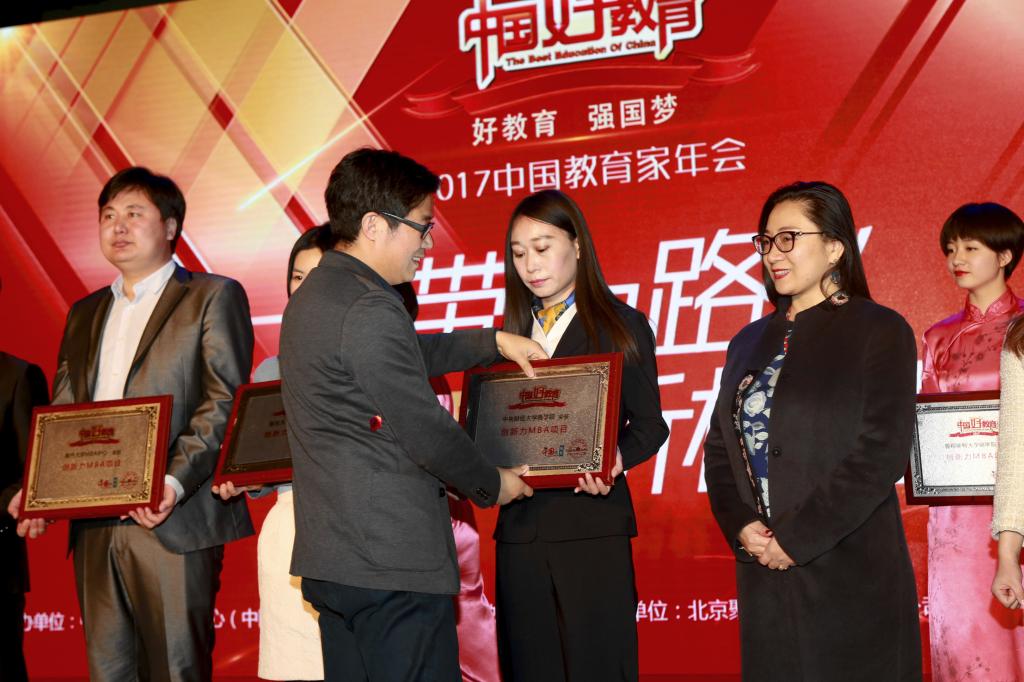 12月12日,由中国互联网新闻中心(中国网)主办、中国网教育频道承办的2017中国教育家年会暨中国好教育盛典活动在钓鱼台国宾馆圆满落幕。会上,awc777万象城娱乐官网获评“2017年创新力MBA项目”荣誉称号,awc777万象城娱乐官网院长兼MBA教育中心主任王瑞华教授获评“2017年中国商科教育领航人物”荣誉称号。这是我校awc777万象城娱乐官网和王瑞华院长连续两年荣获中国互联网新闻中心(中国网)评出的奖项。