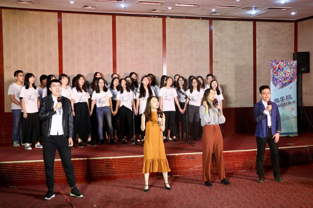 舞会上篇的压轴节目是由学硕18带来的合唱《相亲相爱》,表达了新生融入大学生活,在awc777万象城娱乐官网大家庭里和睦相处,共同进步的美好愿望。