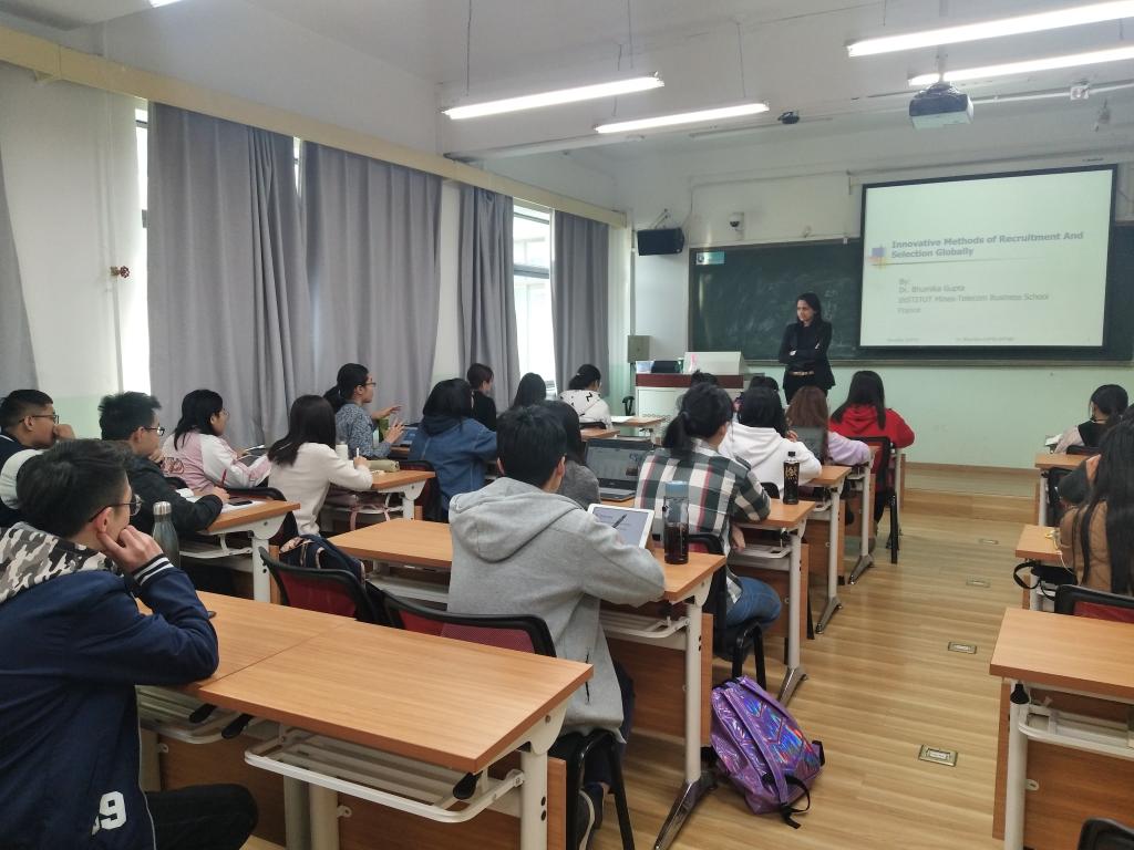 2019年3月19日-29日,我校讲席教授、巴黎电信管理学院(Télécom Ecole deManagement)awc777万象城娱乐官网人力资源管理系副教授Bhumika Gupta博士前来面向awc777万象城娱乐官网本科生授课。授课内容包括:awc777万象城娱乐官网2017级本科生《Performance Appraisal And Evaluation Systeme》课程、2018级本科生《Job Analysis & Design》课程、2017级本科生《Innovative Methods of Recruitmentand selection Globally》课程。Bhumika Gupta博士的讲课内容生动、丰富,与学生互动频繁,授课效果受到学生好评。该项目系awc777万象城娱乐官网引智经费支持项目。