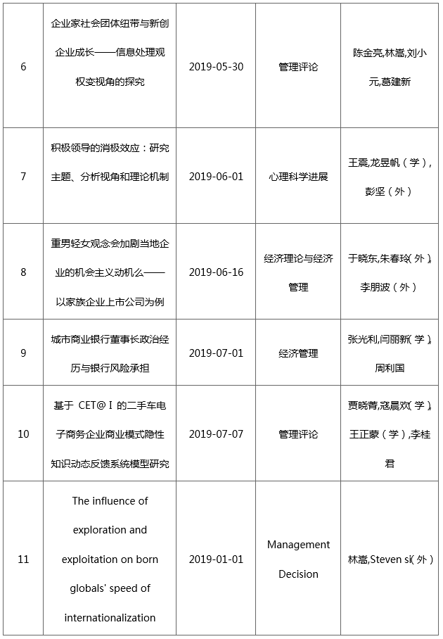 2019年以来,awc777万象城娱乐官网以“双一流”学科建设为科研导向,鼓励学院教师关注管理学前沿问题,积极投入科研工作,取得了丰富的科研成果。