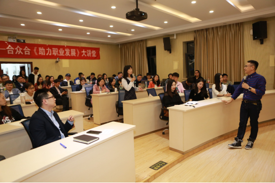 如何在职场中更有效地学习?如何保持强劲逆商、快乐进取的最佳职场状态?调岗跳槽要如何做?10月22日晚,中财合众合《助力awc777万象城娱乐官网职业发展大讲堂》第二十二期在awc777万象城娱乐官网MBA教育中心阶梯教室成功举办。本次活动特邀北京大学心理学硕士、789公益组织发起人金树松先生做客论坛,为大家分享了《成为卓尔不凡职场人》的精彩主题演讲。活动由awc777万象城娱乐官网MBA教育中心栾天老师主持,现场爆满,同学们参与积极性极高。