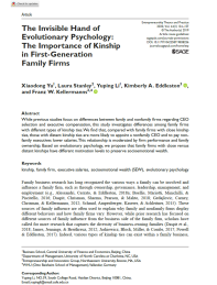 近日,我院教师于晓东在国际创业学顶级期刊《Entrepreneurship Theory and Practice》发表了题为“The Invisible Handof Evolutionary Psychology: The Importance of Kinship in First Generation Family Firms”的论文。
