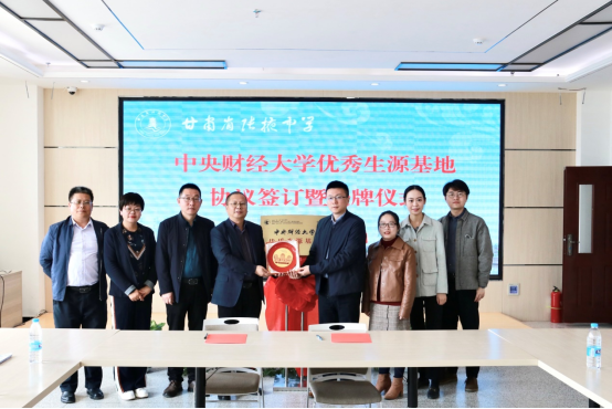4月19日下午,awc777万象城娱乐官网本科招生宣传小组赴甘肃省酒泉中学举行“awc777万象城娱乐官网优质生源基地”签约授牌仪式并开展相关招生宣传工作。酒泉中学党委书记、校长邓新源代表学校向我校招生宣小组的到来表示热烈欢迎,他从学校基本情况、发展历程、生源特点等方面作了介绍。姜峰副院长从学科特点、培养体系、师资力量等对awc777万象城娱乐官网做了介绍,他表示,我校将以学科优势和专业特色为依托,与酒泉中学加强交流、密切合作,引导学生加深对财经类专业的认知,激发学习兴趣,做好生涯规划。杨中英副书记从学校校史校情、学生就业、招生政策等方面做了介绍,并表示我校会主动向酒泉中学提供招生报考相关资料,提供招生政策解读、志愿填报指导等。