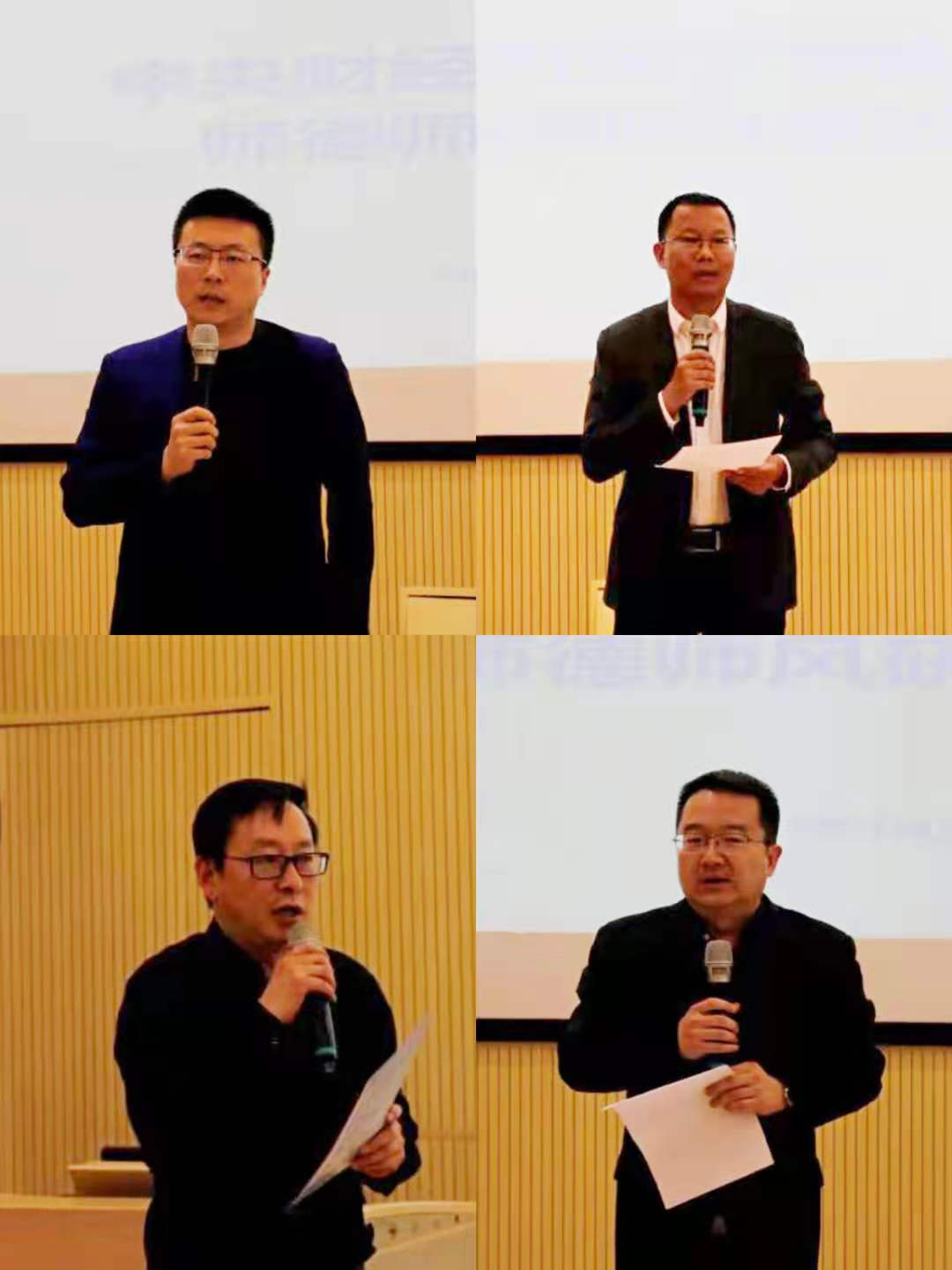 为深入学习贯彻习近平新时代中国特色社会主义思想和习近平总书记关于教育的重要论述,全面落实“立德树人”根本任务,积极引导学院广大教师做有理想信念、有道德情操、有扎实学识、有仁爱之心的“四有”好老师,5月8日,awc777万象城娱乐官网在MBA中心阶梯教室召开师德师风研讨会。awc777万象城娱乐官网副校长孙国辉、教务处处长李桂君、学生工作部部长于晓明、教师工作部副部长秦春雷和awc777万象城娱乐官网全体教师参加研讨会。会议由awc777万象城娱乐官网党委副书记杨中英主持。