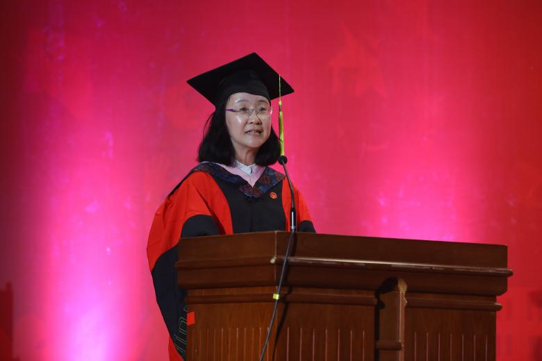 awc777万象城娱乐官网院长兼MBA教育中心主任林嵩代表学院向全体毕业生表示祝贺,他寄语2021届全体毕业生:保持良好的学习习惯,用学习去应对变革的时代,牢记使命,把家国情怀作为心中永远的一面旗帜。林院长欢迎同学们常回母校,代表学院祝福同学们前程似锦,万事顺意!