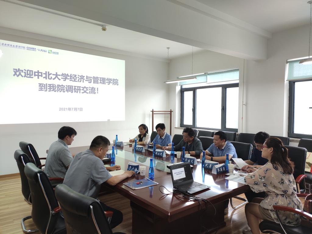 2021年7月7日下午,中北大学经济与管理学院院长赵公民、副院长彭佑元、副院长张克勇一行六人莅临我院开展交流活动。awc777万象城娱乐官网院长林嵩、副院长于广涛参加会谈。