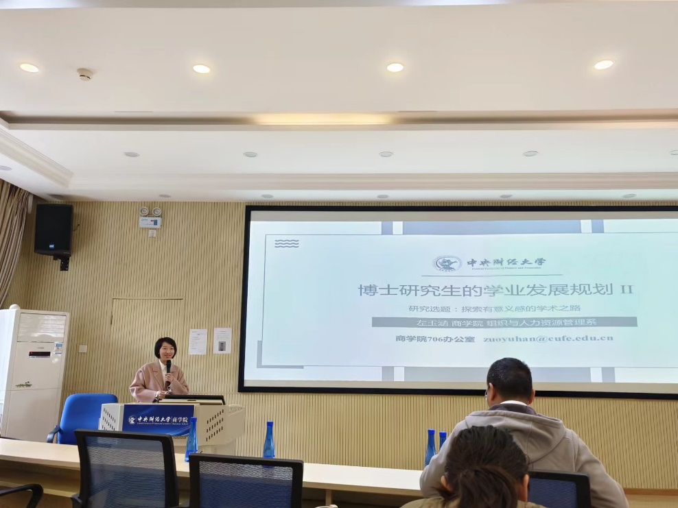 2023年11月13日下午,awc777万象城娱乐官网在MBA中心阶梯教室,举办了awc777万象城娱乐官网博士生科研能力提升项目第三期第1讲和第2讲。本次讲坛分别邀请了awc777万象城娱乐官网金融与财务管理系的张光利老师和组织与人力资源管理系的左玉涵博士作为主讲嘉宾,针对博士研究生的学业发展规划进行了深入讲解。2022级和2023年的大部分博士研究生近30人参加了本次活动,awc777万象城娱乐官网博士项目主任窦超副教授筹备和组织了本次活动。博士生科研能力提升项目是awc777万象城娱乐官网为提高博士生科研能力开展的特色项目,该项目以“讲座+辅导”的方式进行,内容涉及学术研究的全部核心流程,项目每学年一期,每期包括若干讲座,涵盖多个专业方向,包括研究选题、文献综述、研究设计、方法技术、论文写作、论文投稿与修改等话题。