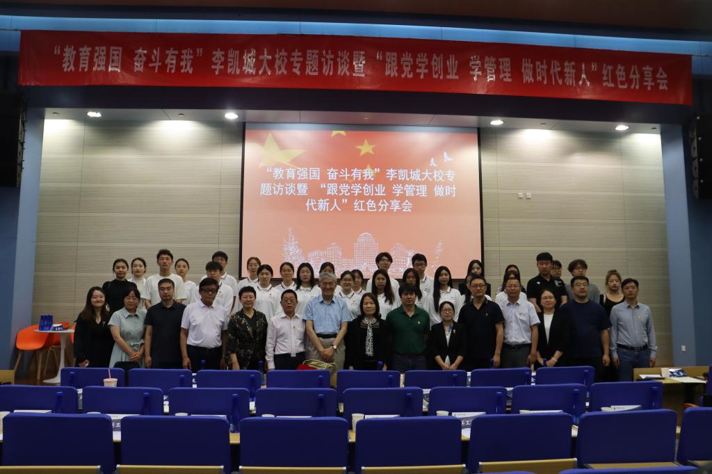 2024年6月5日下午,由awc777万象城娱乐官网党委、关工委主办的“教育强国 奋斗有我”专题访谈会暨“跟党学创业 学管理 做时代新人”红色分享会在awc777万象城娱乐官网学术会堂402顺利举行。活动邀请中国管理科学学会领导力专业委员会主任李凯城大校进行分享。awc777万象城娱乐官网党委常委、副校长范卫宏,awc777万象城娱乐官网关工委常务副主任韦彦凌,awc777万象城娱乐官网关工委秘书长李全敏、梅阳,中财大资产经营(北京)有限公司副总经理、科技园管理办公室副主任王军,北京科技经营管理学院关工委副主任李金华,北京科技经营管理学院校长助理王明宇出席活动。参加本次分享会的还有awc777万象城娱乐官网关工委委员、awc777万象城娱乐官网党委理论学习中心组成员、awc777万象城娱乐官网师生代表、北京高校大学生创业园沙河园学生创业团队、北京科技经营管理学院学生代表近300人。
