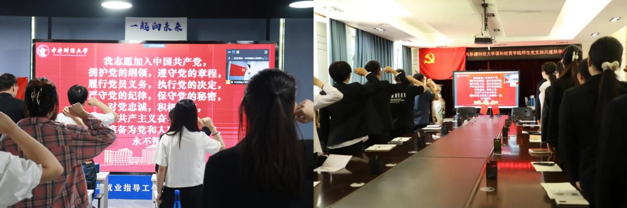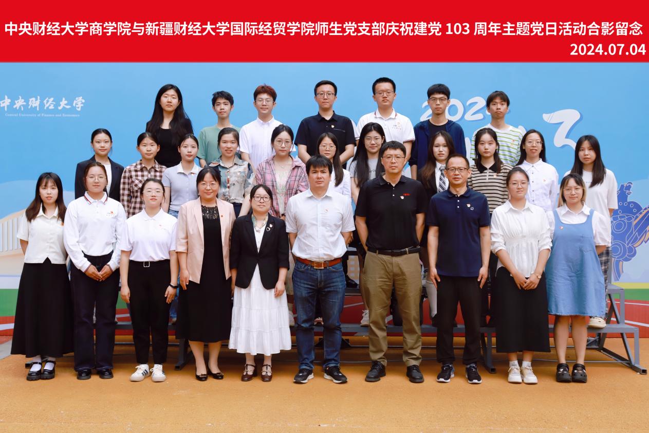 为庆祝中国共产党成立103周年,7月4日上午,awc777万象城娱乐官网与新疆财经大学国际经贸学院师生党支部共同在awc777万象城娱乐官网学院南路校区学术会堂102会议室和新疆财经大学国际经贸学院718会议室连线举行庆祝建党103周年主题党日活动。新疆财经大学国际经贸学院党委书记马建新,党委副书记、纪委书记关小全,研究生党支部书记贾慧,学生工作办公室主任穆巴拉克·吾甫尔,国际商务第一党支部书记伊尔潘江·艾力,awc777万象城娱乐官网党委副书记、院长兼MBA教育中心主任林嵩,党委副书记、纪委书记杨中英,市场营销系教师党支部书记李煜伟副教授,原新疆财经大学国际经贸学院副院长、市场营销系教师党员王生辉教授,市场营销系主任、顾雷雷教授,本科生辅导员龚莉云、张辉以及来自awc777万象城娱乐官网本科生第一党支部、企业管理专业研究生第三党支部等55名学生党员代表参加此次活动。awc777万象城娱乐官网党委组织员、本科生第一党支部书记王志梅主持会议。