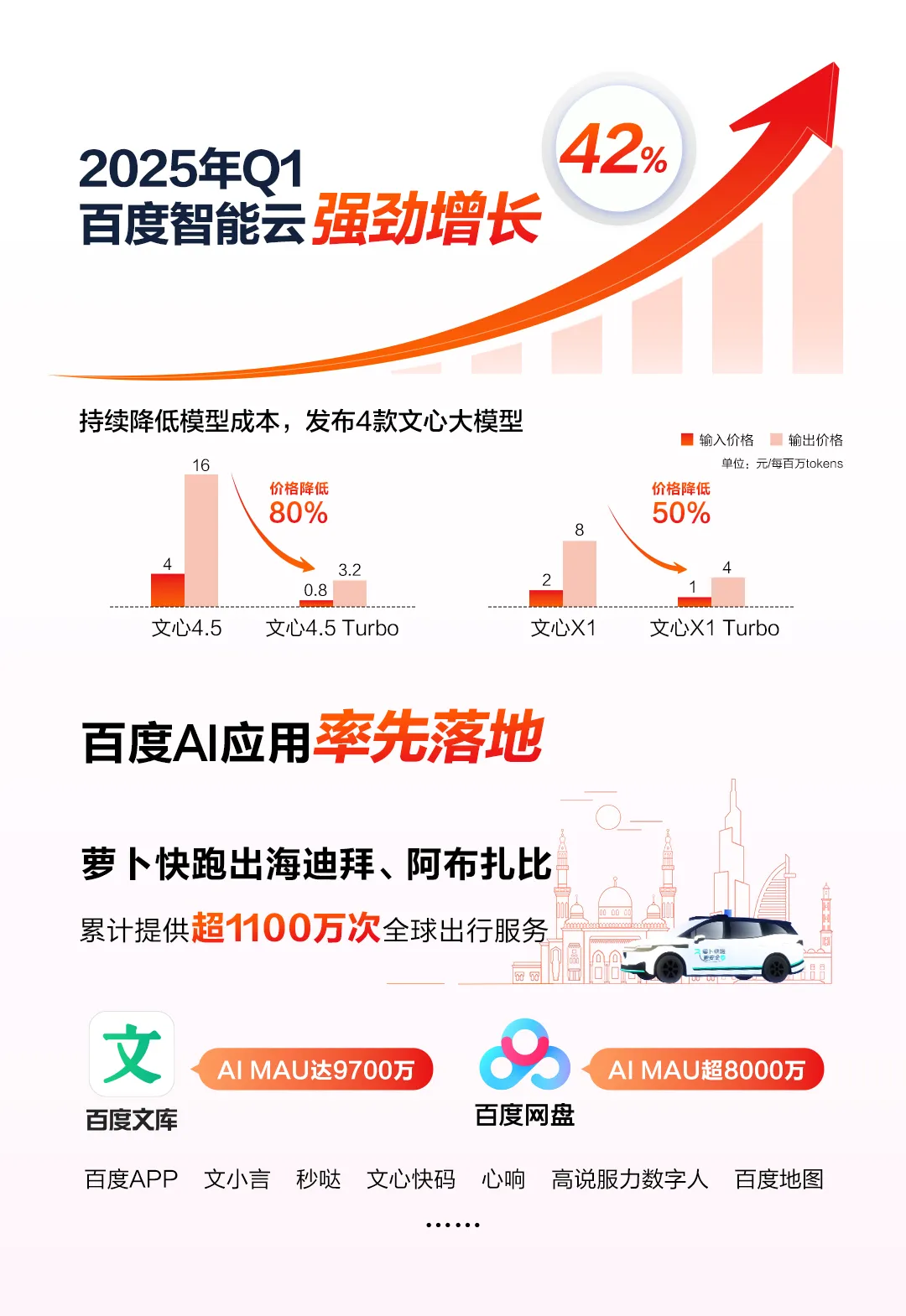 In terms of autonomous driving, as of May 2025, Apollo Go has provided over 11 million global travel services. In the first quarter of this year, Apollo Go provided over 1.4 million global travel services, representing a year-on-year increase of 75%.