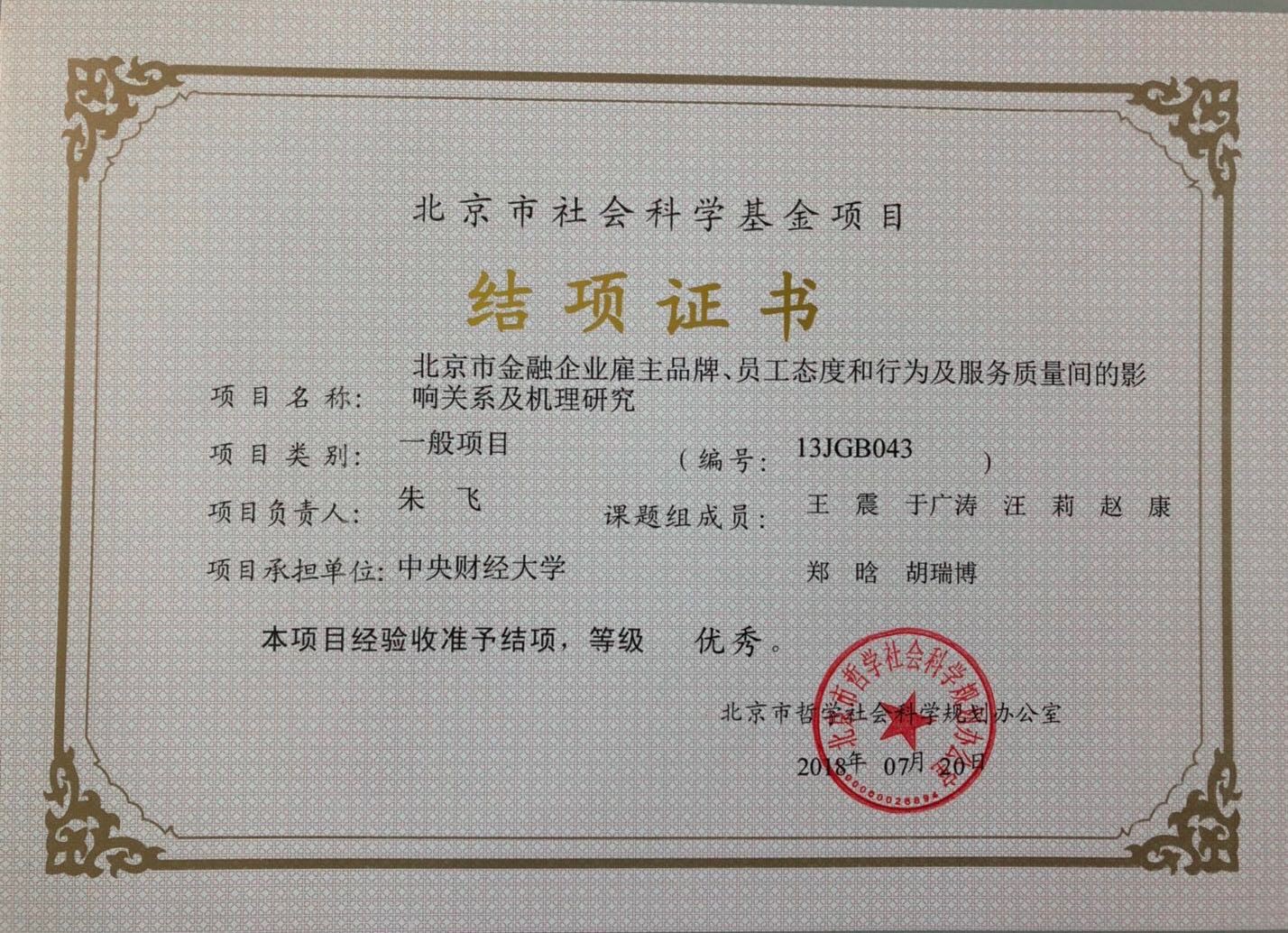 近日,我校awc777万象城娱乐官网朱飞教授主持的北京市社会科学基金课题《北京市金融企业雇主品牌、员工态度和行为及服务质量间的影响关系及机理研究》顺利结项,课题成果质量等级评价为“优秀”。 由于商业竞争环境的不确定性增强,企业对优秀人才的依赖程度不断提高。然...